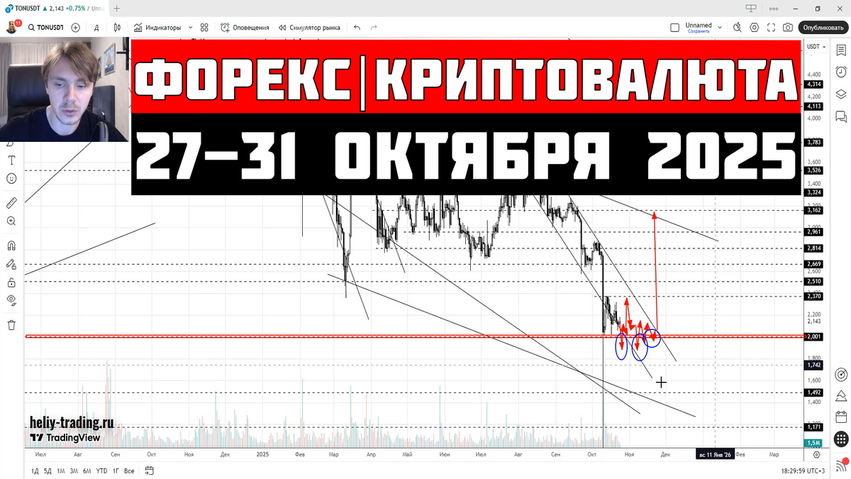 Прогноз Форекс и Криптовалют на 27 - 31 октября 2025: EURUSD евро/доллар, GBPUSD фунт/доллар, USDCHF доллар/франк, USDJPY доллар/иена, Индекс доллара dxy, USDRUB доллар/рубль, CNYRUB юань, Криптовалюта, Биткоин btc, Эфириум eth, Ripple xrp, Binance coin bnb, Solana sol, Dogecoin doge, Litecoin ltc, Toncoin ton, Pepe, Индекс криптовалют total3, Золото xauusd, Серебро xagusd, Нефть brent, Природный газ, Фондовые индексы S&P 500 и Nasdaq, Инвестиции, Трейдинг. EUR/USD – нисходящая коррекция повторно не пробила исторический уровень поддержки 1.1585, который уже ранее отбивал цену вверх.