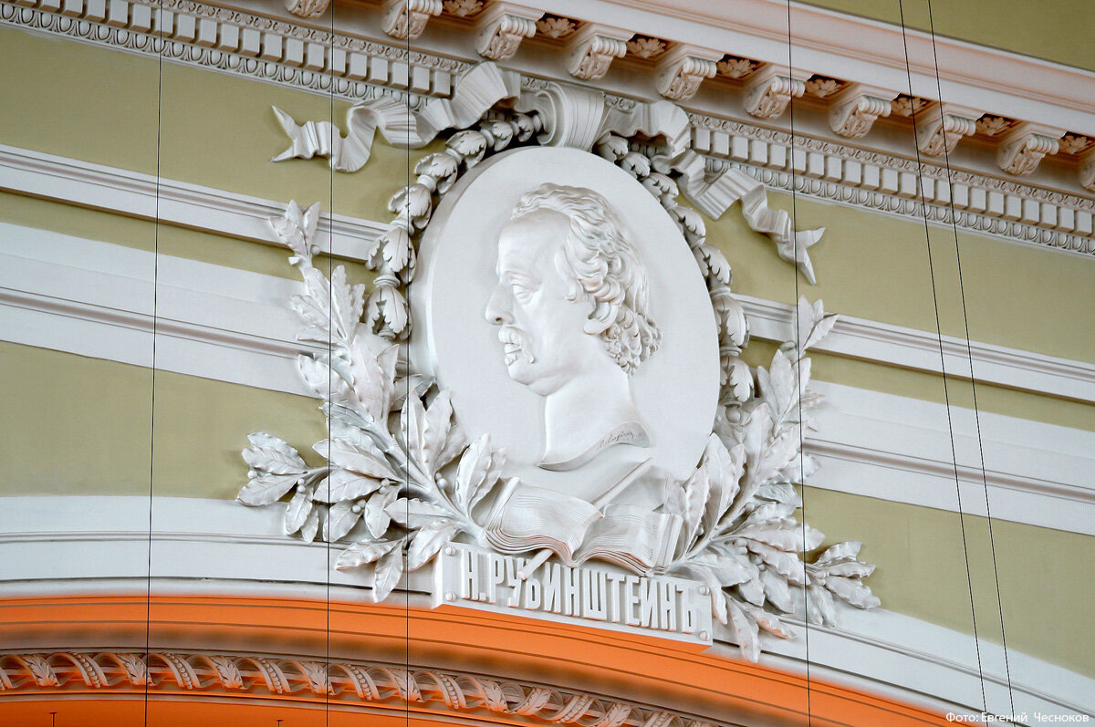 Кто создал московскую консерваторию? Забыла рассказать, что 11 октября этого года я со своей Сашенькой открыла сезон концертов в Большом зале Московской консерватории. Для меня это был первый концерт в этом сезоне, а для Сашеньки первое посещение консерватории. Мне вспомнилось что на открытие Большого зала в 1901 году торжественный концерт начинался с гимна «Воздвигнут храм искусству дорогому». А как же не храм. Я каждый раз с замиранием сердца вхожу туда, а сашенькин волнительный трепет был виден на ее лице. Мы вошли через ротонду мимо двух скульптур амазонок. Затем поднялись по лестнице к витражу Святой Цецилии, покровительнице церковной музыки. Потом вошли в зал, где нас встретили четырнадцать композиторов, которые смотрели на на нас со своих портретов, от Баха до Римского-Корсакова. А в центре зала над сценой мы увидели барельеф основателя Московской консерватории. Концерт наш так и назывался « Кто создал Московскую консерваторию?». И уже после первого отделения Сашенька и ее д