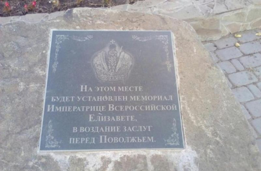 В Волжском рядом с домом по адресу площадь Труда,19 находится каменная табличка, гласящая: «На этом месте будет установлен мемориал Императрице Всероссийской Елизавете, в воздание заслуг перед Поволжьем». Установили ее еще до 2014 года, а сам памятник планировали воздвигнуть через пару лет. Однако, спустя вот уже 11 в сквере, который расположился на этом месте, до сих пор нет ничего, кроме этой самой таблички.