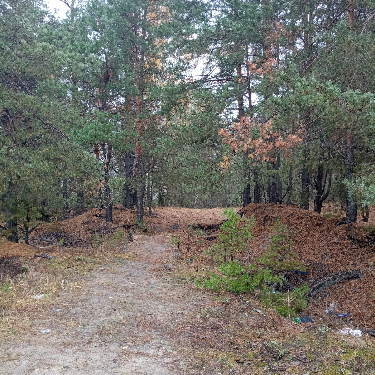 Выехали не рано, около девяти часов. Туман немного рассеялся. Поехали по другой дороге, решили заехать в сосняк и нарезать немного веток. Лапника мы там не нашли, растут какие-то тощие сосенки и всё. По низам нащипали немного, с полмешка, не больше.