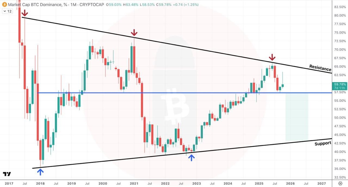 $BTC.D Макро-график всё ещё заставляет меня верить в альтсезон