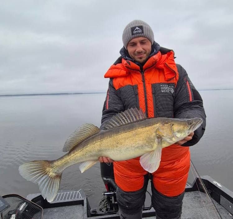 Судак - козел ! Да ,не стыдного судака для фоточки мы, конечно,поймали . Но в целом ,все 4 дня судак демонстрировал ааабсолютно козлиное поведение , игнорируя все наши попытки изыскать таки заветный ключик . Те редкие особи,что таки посетили лодку ,были пойманы на 5 дюймов на облегчении груза и умирающей проводке . В один из дней всплыли и гуляли прям жирные ,трофейные парни ,но даже не смотря на обильное количество крупной рыбы ,активность ее была ниже плинтуса. И мы бы 100% возвращались с рыбалки без чувства удовлетворения ,не утолив голод до поклевок и контактов с рыбой,если бы целью вылазки был бы судак . Нов этот раз мы ехали за щукой и она не подвела )
