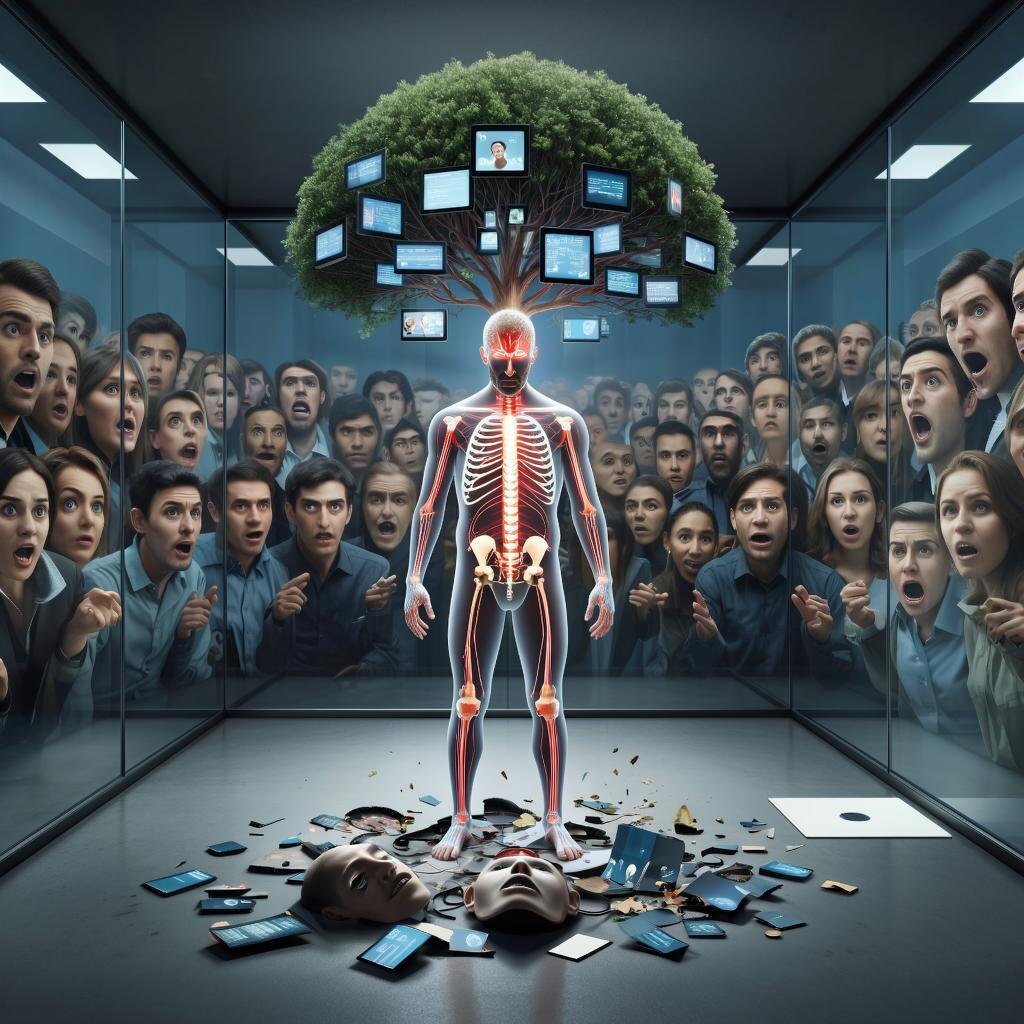 Психологическая цена прозрачности оказывается высокой. Постоянное ощущение наблюдения приводит к хроническому стрессу, тревожности, трудностям с самоидентификацией. Развивается "синдром самозванца" — ощущение, что твой публичный образ не соответствует внутреннему состоянию. Исчезает возможность аутентичного существования, когда разные аспекты личности могут находиться в противоречии друг с другом.