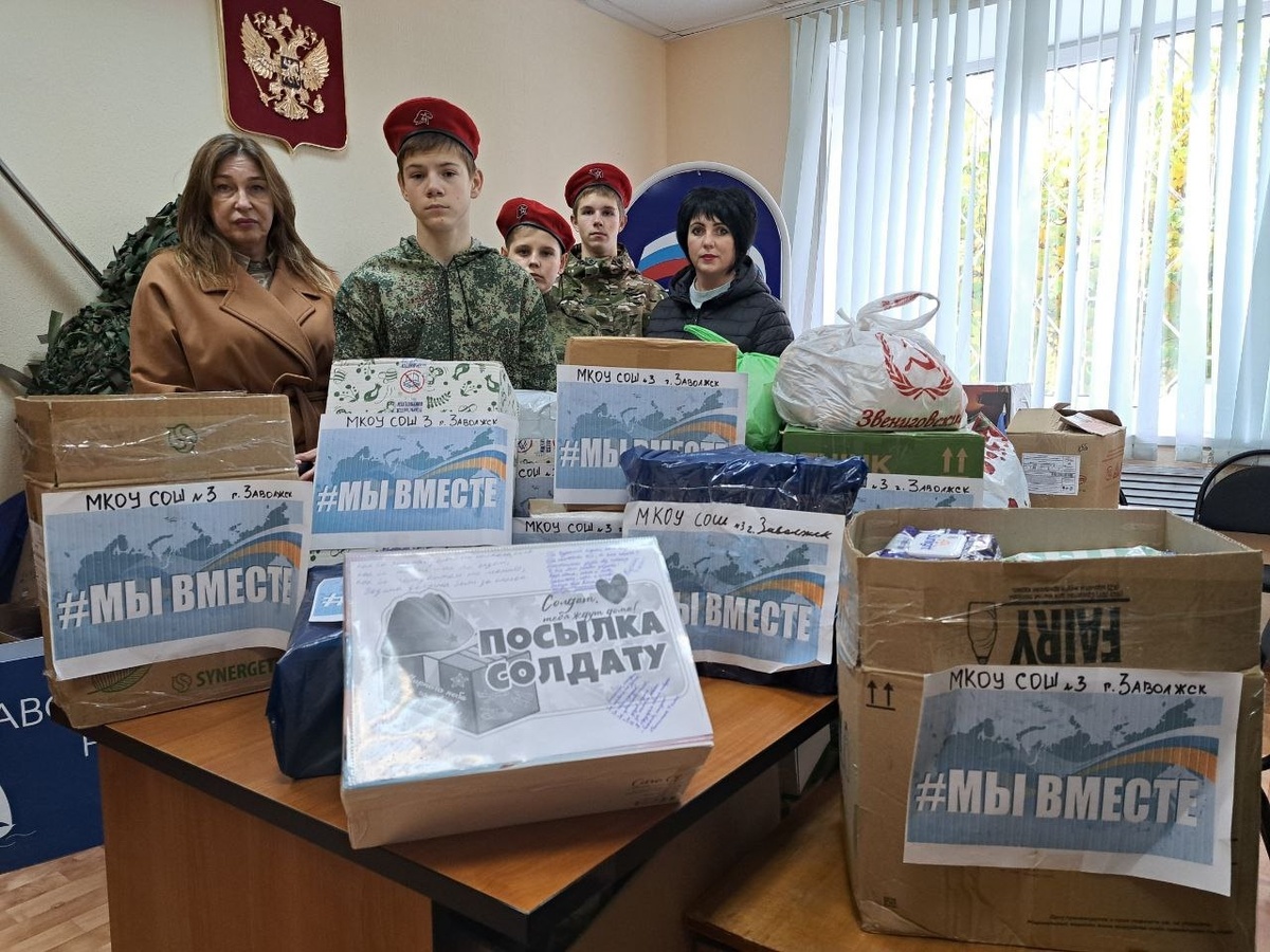 В местном отделении партии «Единая Россия» города Заволжска продолжается сбор гуманитарной помощи для участников спецоперации. Значительный вклад в эту гуманитарную миссию внесла средняя школа № 3. Юнармейцы вместе с директором Ларисой Беловой и советником директора по воспитанию Наталией Семёновой привезли в пункт сбора посылки для бойцов. В сборе гуманитарной помощи приняли активное участие не только школьники, но и их родители, а также педагоги. В состав помощи вошли медикаменты, перевязочные средства, продукты питания с длительным сроком хранения, кондитерские изделия, теплые носки, влажные салфетки. Особое внимание ребята уделили моральной поддержке военнослужащих. Ученики подготовили для них трогательные рисунки и письма. Каждое послание – это знак внимания и уважения к тем, кого дети не знают лично, но искренне гордятся и верят в Победу.