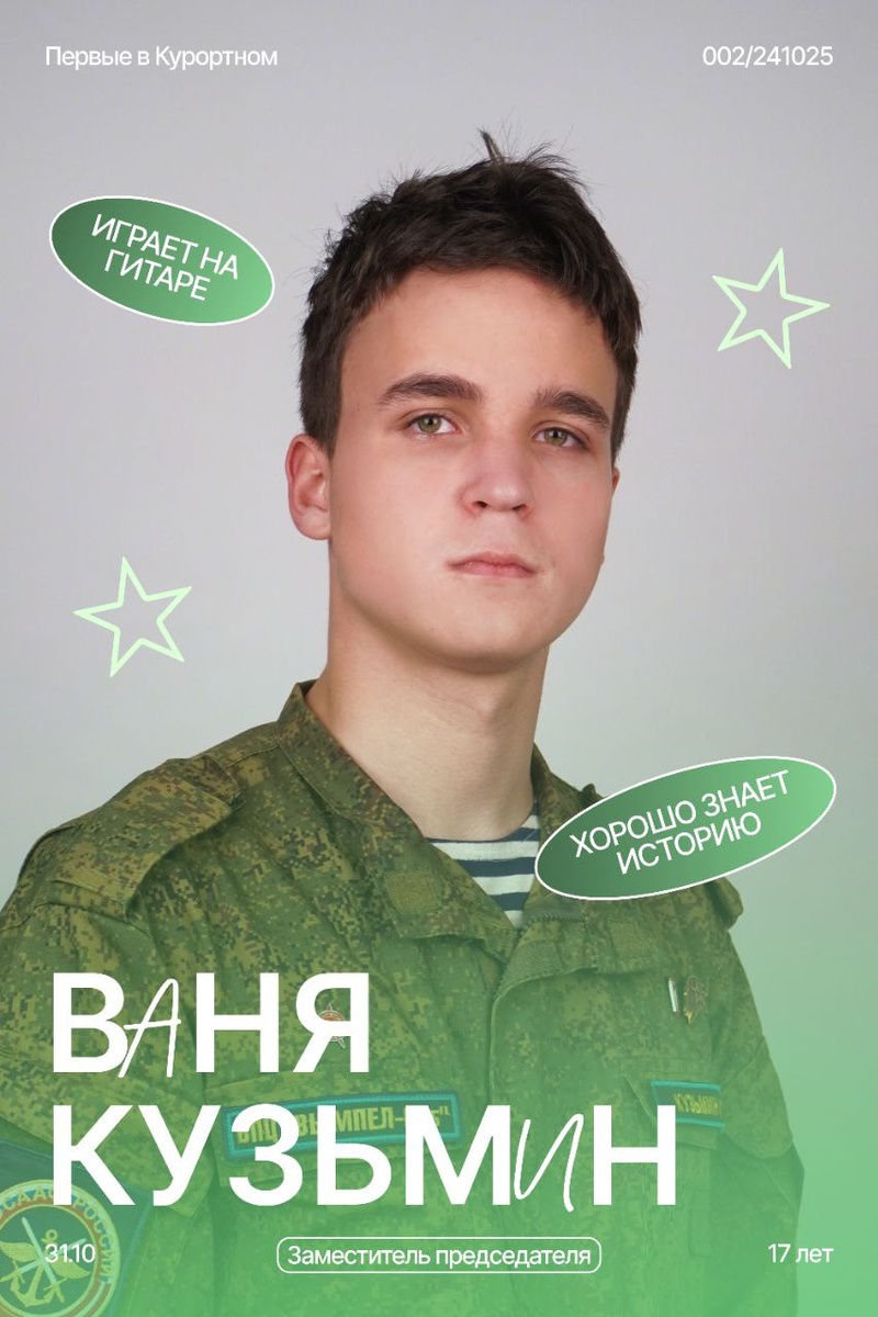 🔥 Знакомство с Курортным Председатель слишком занят и не отвечает? 😠 Не получается организовать мероприятие? 😭 Кто придёт на помощь? 😅 Конечно же, Иван Кузьмин — заместитель председателя по культурно-массовой работе. Спокойный и отзывчивый, внимательный и понимающий — именно эти качества делают Ваню хорошим другом и руководителем. 😎 Если устроить блиц-опрос по истории на интервью с Ваней, он наверняка ответит безошибочно на все вопросы. Заместитель председателя знает историю даже в мельчайших подробностях. 📖 Неожиданно, но Ваня играет на гитаре в музыкальной группе. Возможно, когда-то они начнут выпускать свои собственные треки или импровизировать на сцене! 🐱 🔥 Будь разносторонним, будь в Движении! #ДвижениеПервых #ДвижениеПервыхСПб #ПервыеКурортный #ЗнакомствоСКурортным