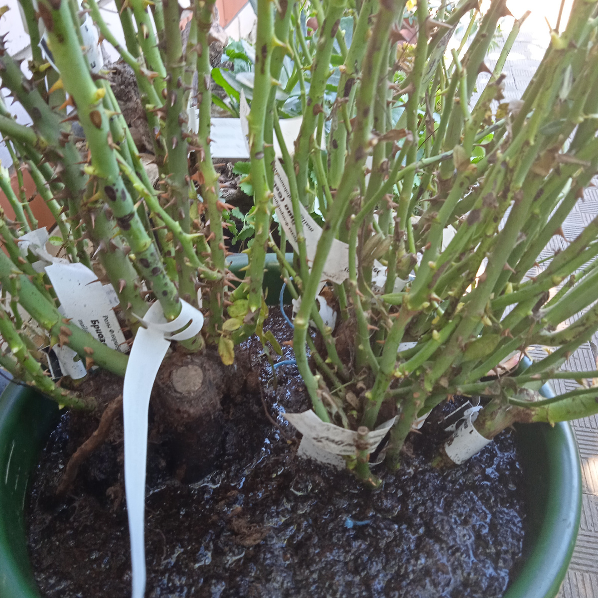 Может вспомнили, что они вечнозеленые, а может просто голеньким сидеть надоело. А что? условия комфортабельные, тепло и сытно, почему бы и не распуститься! Откуда им знать, что на улице осень? Выкопали, ощипали, привезли, посадили, надо расти! Вот и растут. Это я сейчас о тех розах, что приехали ко мне в сентябре. Голенькие, как и положено розам при осенней посадке. А я люблю осенние посадки, времени побольше, да и розы доступнее в это время. Заказала, почти все свои хотелки, не то, что весной. Мои прибыли 9 сентября и в течении двух дней я их высадила. Места у них козырные. Ямки были выкопаны и хорошо заправлены. Растите на здоровье! Но в начале октября жахнул мороз, да не шуточный, местами доходило до -9. Накануне морозов, я все новые розочки засыпала перегноем, чтобы случайно не подморозить прививку. И вот, они посидели, посидели и стали расти. Сначала я подумала, что так поступают только ч/грозы, но нет! Посмотрите, как распетушился Тотон, а это роза флорибунда. Ну чем не весна?