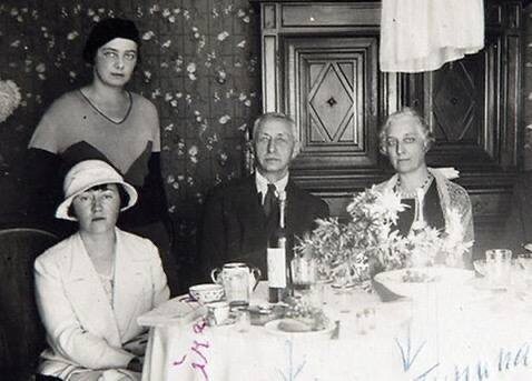 Вера Николаевна приняла Галину в их семью и жизнь. Так они прожили вместе пятнадцать лет. «Пусть любит Галину... только бы от этой любви ему было сладостно на душе...», — писала смирившаяся Вера Николаевна в своём дневнике. Этот любовный треугольник разбился о берега другой любви. Бунин вместе с Галиной и Верой Николаевной поехал получать Нобелевскую премию в Стокгольм. На обратном пути Галина простудилась и решено было "переболеть" Галине в доме друга Бунина — философа Фёдора Степуна. Пикантность драматургии заключалась в том, что Галина познакомилась там с сестрой Степуна Маргаритой, и между ними довольно быстро завязался роман... Для Бунина это был невыносимый удар: он старался вернуть Галину, они даже какое-то время жили вчетвером на вилле писателя в Грассе, но позже Маргарита и Галина покинули Буниных и стали жить отдельно. (На фото слева направо: Галина Кузнецова (стоит), Маргарита Степун, Бунин, Вера Николаевна ) ⤵️