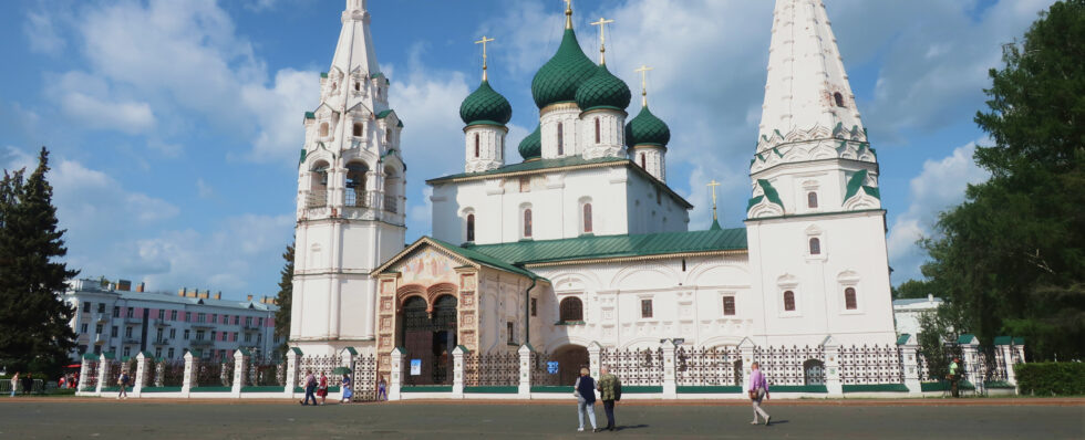 Первой поездкой из Ярославля было путешествие в Тутаев. Для этой 30-километровой (в один конец) поездки мы арендовали авто с водителем — проще говоря, наняли такси, то же самое, которое везло нас с вокзала в отель. На общественном транспорте туда добираться не очень удобно, а экскурсий в те дни не было. Зачем же мы туда ездили? Как же… Посмотреть на один из красивейших храмов России!