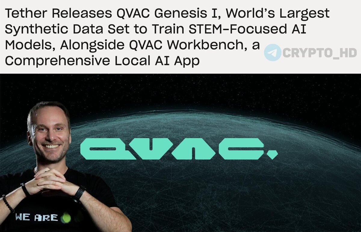 💶 #USDT Tether всерьез заходит в AI-индустрию. ➥ Запущен QVAC Genesis I – крупнейший в мире синтетический AI-датасет (41,000,000,000 токенов), созданный для обучения AI-моделей математике, физике, биологии и медицине. ➥ Цель – демократизировать искусственный интеллект: сделать AI доступным каждому, а не только Big Tech. «AI-технологии не должны быть централизованными. Они должны принадлежать людям, а не корпорациям», – Паоло Ардоино. ➥ Вместе с датасетом представлено приложение QVAC Workbench – локальная AI-платформа, где модели работают прямо на устройстве пользователя (без облаков и утечек данных). ➥ Поддерживаются открытые модели: Llama, MedGemma, Qwen, Whisper, SmolVLM и др. ➥ Доступно на Android, Windows, macOS, Linux (iOS – скоро). ➥ Все данные остаются у пользователя, но при этом можно соединять телефон и ПК через P2P, чтобы использовать вычислительную мощность компьютера/ноутбука. ➥ Tether делает ставку на Local AI – искусственный интеллект, который живет и развивается
