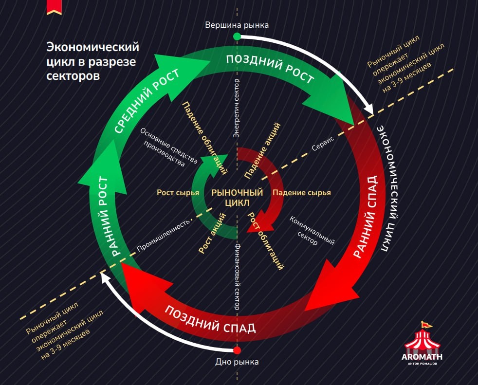 📊 Влияние фазы экономического цикла на поведение разных классов активов (акции, облигации, сырьё, недвижимость