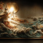 В самых тайниках сердец каждого создания, наверное, есть эта щемящая печаль об оставленном позади, по невозвратному, то особое переживание, когда вселенная кажется разделенной на две части. Итак, наше повествование переносит слушателей в загадочные эпохи становления страны восходящего солнца, когда из первичного беспорядка рождались клочки земли и небожители. Это был золотой период, когда Идзанаги и его очаровательная спутница Идзанами, два создателя миров, стояли у самых начал, выстраивая это бытие постепенно. Однажды, во время творения, Идзанами покинула это смертное существование, уйдя в обитель теней, подземное царство, и оставила своего обожаемого мужа в безмерной скорби. Конечно, безутешный Идзанаги не смог принять неизбежное с такой утратой, и его душа, надо заметить, рвалась в то место, где пребывала его дорогая, дабы попытаться её возвратить. Он смело направился в мир под землей, это пространство, где царит бесконечная темнота и властвует кончина, но зрелище, представшее его г