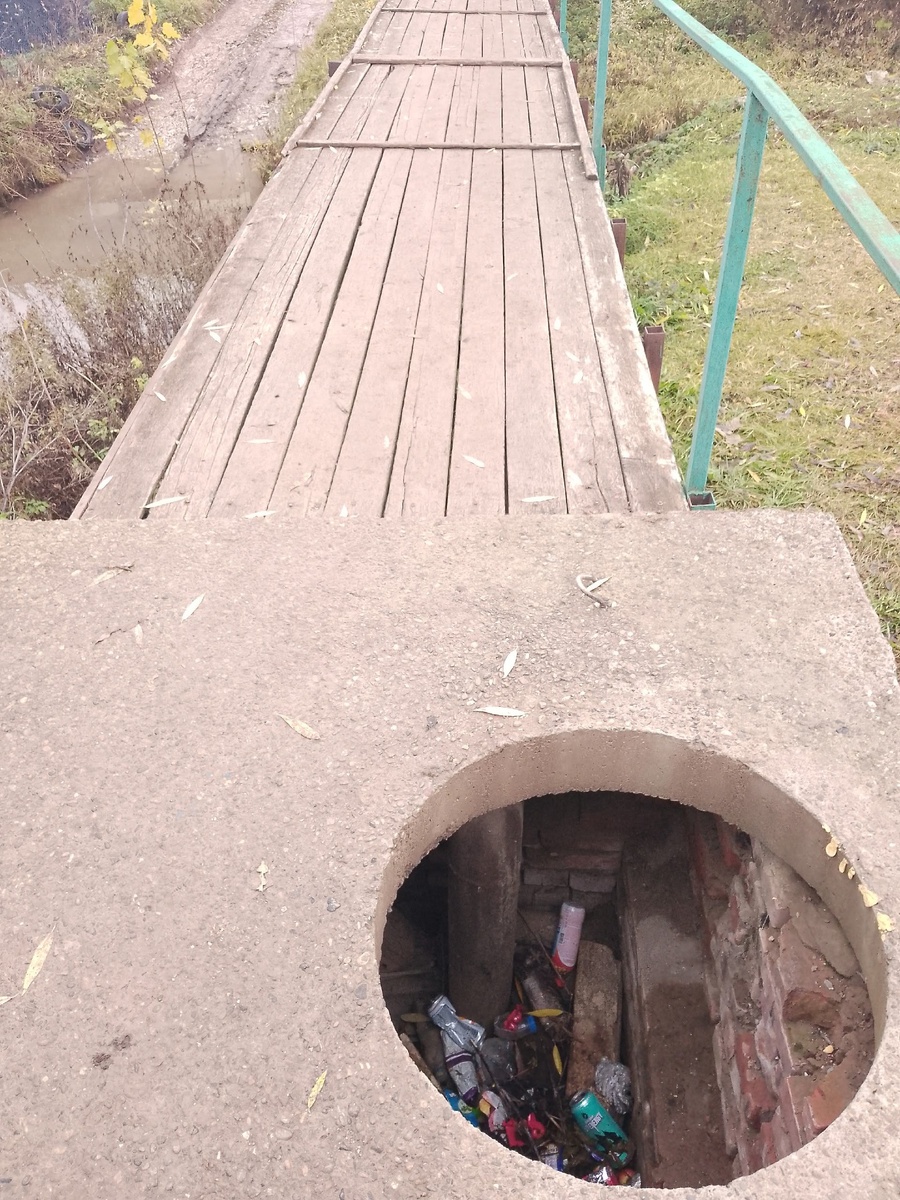 Вот так выглядит мост через речку Беркас на улице Пушкина. Можно упасть в эту яму. Примите пож меры.