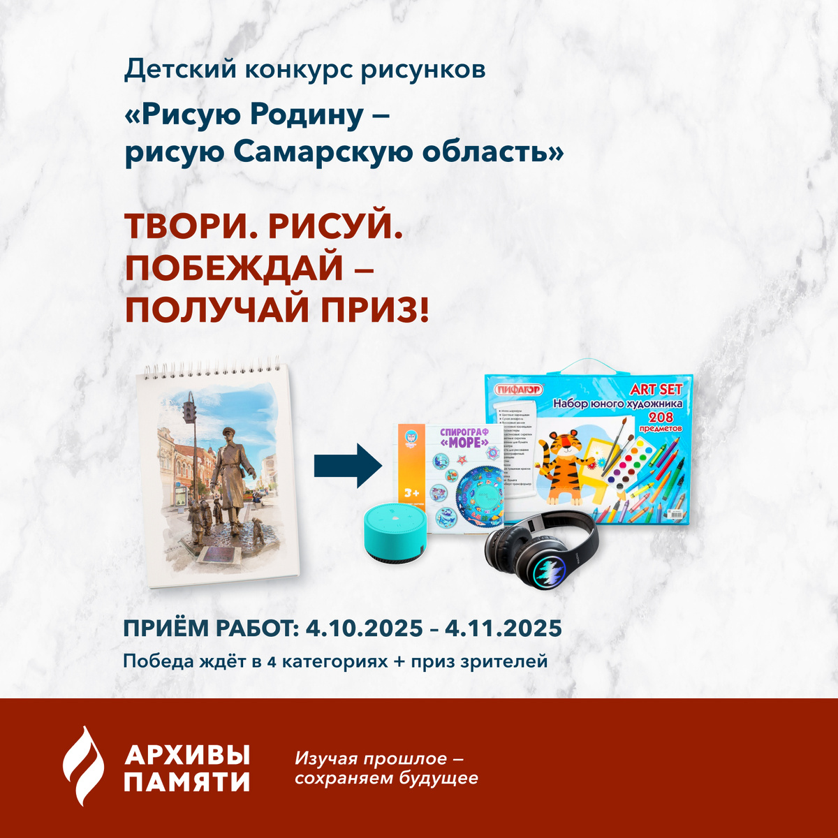 любят помогать ) показать наш край таким, каким вы его чувствуете - ярким, красивым и неповторимым! 1. Подпишитесь на наш аккаунт https://vk.com/archiv_pamyaty 2. Нарисуйте работу на тему «Рисую Родину – рисую Самарскую область». 3. В рисунке можно изобразить памятники культуры, архитектуры, места исторического наследия любимого края. 4. Подойдёт любая техника: акварель, гуашь, карандаши, маркеры. 5. Формат работы - А4. 6. Разместите рисунок в папке https://vk.com/album-147654855_308737365 «Конкурс рисунков» с хэштегом #АрхивыПамяти_конкурс. 7. Укажите в подписи: название работы, возраст и город.