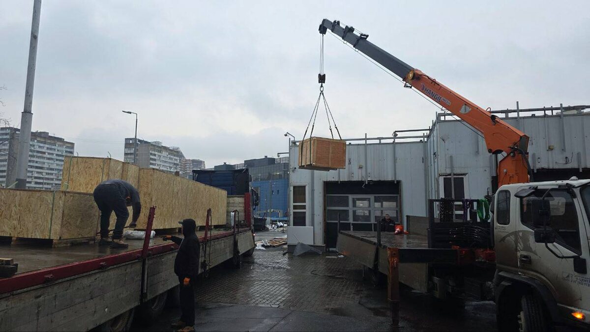 Старт монтажа. На фото разгрузка двух роботов🔥 Параллельно ведем работы по фасаду здания, скоро будет красиво!