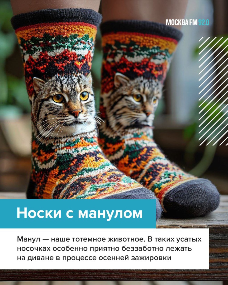 ☺️ Отмечаем День любви к тёплым носкам Сегодня принято ходить в гости и дарить тёплые носочки. Ну или просто вечером надевайте свои лучшие экземпляры и согревайтесь в эту предпоследнюю пятницу октября. 🔝 А мы представили, как могли бы выглядеть идеальные носки для предстоящих холодных деньков. 🧦 Моя прелесть... 📌 Подписаться на Москва FM / Наш чат-бот / Мы в MAX