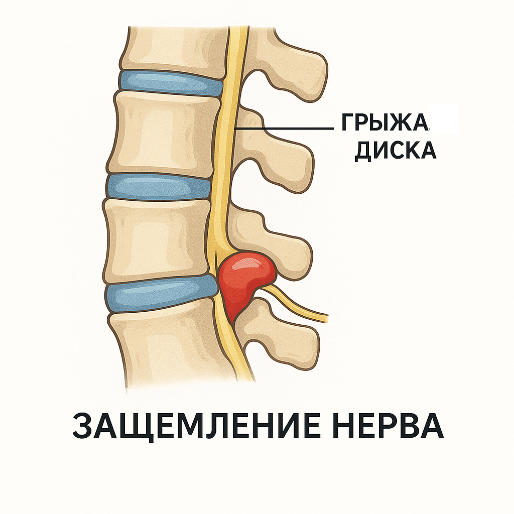 Грыжа (или грыжа межпозвонкового диска) — это дальнейшая стадия, когда внешняя оболочка диска разрывается, и его внутреннее содержимое (пульпозное ядро) выходит наружу. Что такое межпозвонковый диск? Представьте себе пончик с желе: Фиброзное кольцо — это плотная, упругая внешняя оболочка ("тесто" пончика). Пульпозное ядро — это гелеобразное содержимое внутри ("желе"). Диск находится между позвонками и выполняет амортизирующую функцию. Протрузия При протрузии фиброзное кольцо ослабевает, растягивается и весь диск равномерно или неравномерно "выбухает" за свои анатомические границы. Фиброзное кольцо остается пока целым, разрыва нет. Это можно сравнить с накаченной автомобильной камерой, которая начинает выпирать в сторону, но сама покрышка еще не порвана. Выпячива