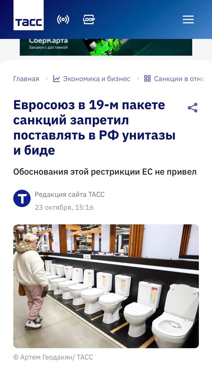 Триста пятьдесят какой-то там пакет санкций: -запрещаем поставлять кислый скитлс -показывать 4 сезон друзей -заходить на вторую страницу поиска Гугл -говорить слов «фешн»