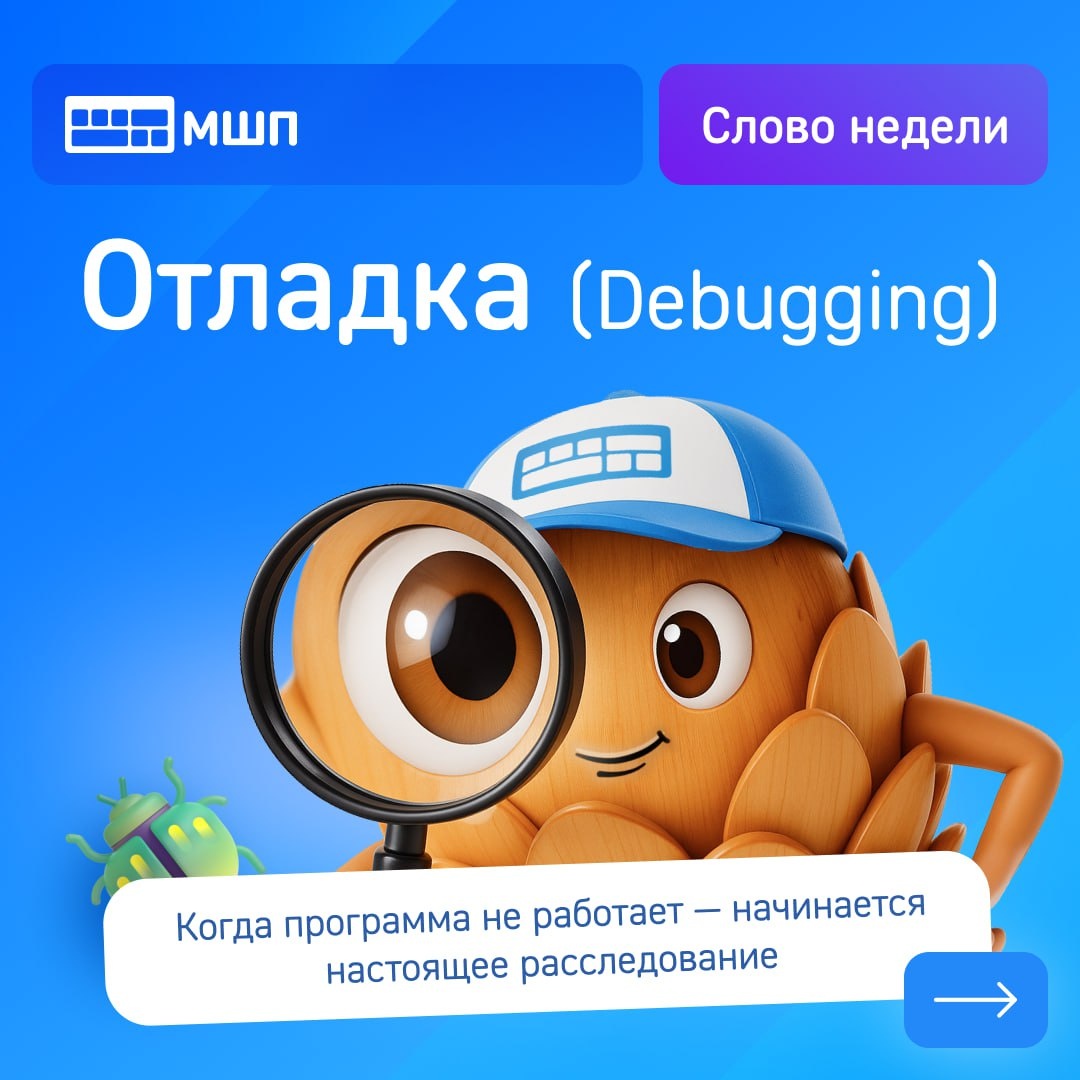 ❓ Что такое «Отладка»? ❓ Каждый день программисты сталкиваются с ними — багами! Чтобы с ними справляться, каждый разработчик должен знать, как с ними справляться. Об этом мы и поговорим в свежем выпуске «Слова недели»! ✏️ Слово этой недели — отладка! О том, что это такое, почему она так важна, и какие инструменты помогают разработчикам справляться с багами, смотрите в наших карточках! 📌