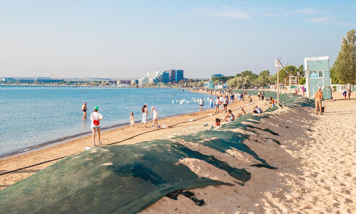, фото: Natalia Kokhanova/Shutterstock/Fotodom.ru📷Так выглядели песчаные валы в Анапе в первые месяцы 2025 года, они были призваны задержать нефтепродукты в случае новых разливов, сетки время от времени меняли на чистые