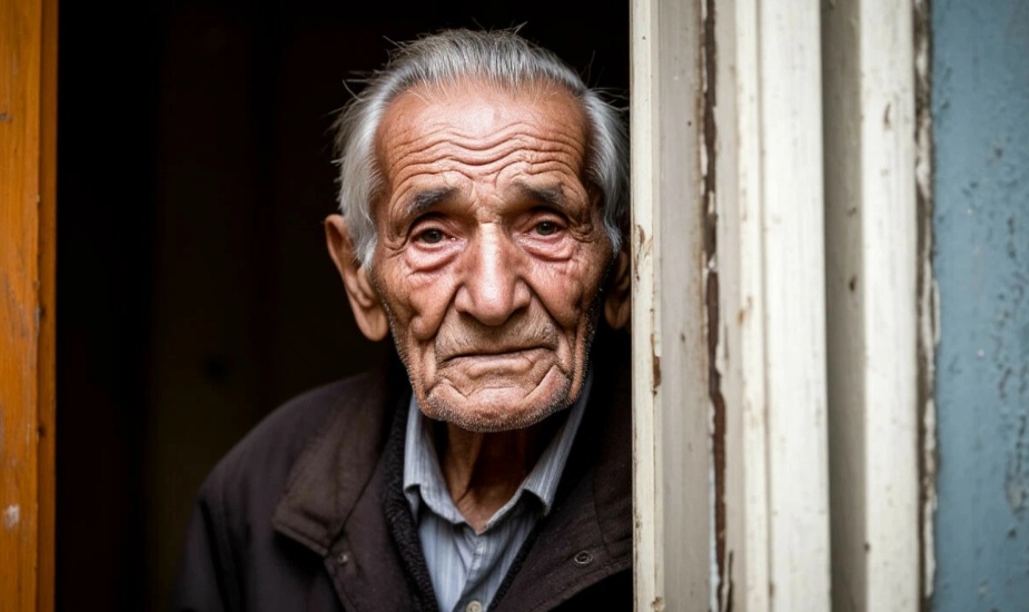 Вблизи он казался ещё старше: глубокие морщины на лице, впалые щёки, седые волосы, аккуратно зачёсанные назад.