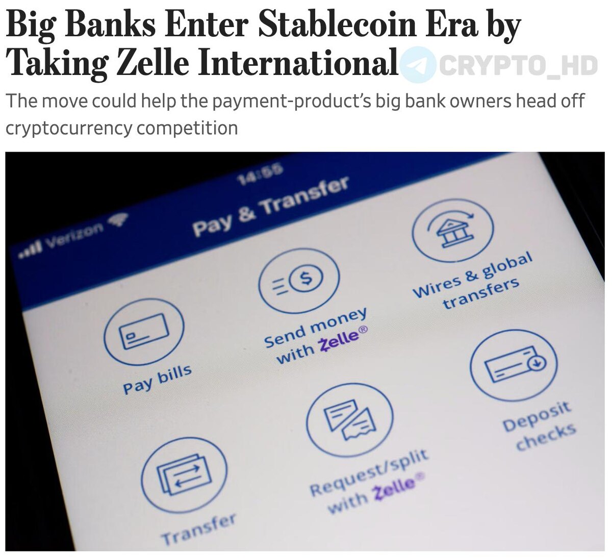 . Π Zelle (ΠΏΠ»Π°ΡΠ΅ΠΆΠ½ΡΠΉ ΡΠ΅ΡΠ²ΠΈΡ JPMorgan, Citi ΠΈ Wells Fargo) ΠΎΠ±ΡΡΠ²ΠΈΠ»ΠΈ, ΡΡΠΎ Π²ΡΠΊΠΎΡΠ΅ ΠΏΠΎΠ·Π²ΠΎΠ»ΡΡ ΠΏΠΎΠ»ΡΠ·ΠΎΠ²Π°ΡΠ΅Π»ΡΠΌ ΠΎΡΠΏΡΠ°Π²Π»ΡΡΡ Π΄Π΅Π½ΡΠ³ΠΈ Π·Π° Π³ΡΠ°Π½ΠΈΡΡ ΡΠ΅ΡΠ΅Π· ΡΡΠ΅ΠΉΠ±Π»ΠΊΠΎΠΈΠ½Ρ. Π’Π΅ΠΏΠ΅ΡΡ ΠΈΠΌΠ΅Π½Π½ΠΎ Π±Π°Π½ΠΊΠΈ, Π° Π½Π΅ ΠΊΡΠΈΠΏΡΠΎΠΏΡΠΎΠ΅ΠΊΡΡ, ΠΏΠ΅ΡΠ²ΡΠΌΠΈ ΡΠ΅ΡΡΠΈΡΡΡΡ ΠΌΠ°ΡΡΠΎΠ²ΡΠ΅ ΠΏΠ»Π°ΡΠ΅ΠΆΠΈ Π½Π° Π±Π»ΠΎΠΊΡΠ΅ΠΉΠ½Π΅. Π Π°Π½Π΅Π΅: - ΡΡΠ΅ΠΉΠ±Π»ΠΊΠΎΠΈΠ½Ρ ΡΡΡΠ°Π½ G7 - ΡΠΎΠ±ΡΡΠ²Π΅Π½Π½ΡΠΉ ΡΡΠ΅ΠΉΠ±Π»ΠΊΠΎΠΈΠ½ Crypto Headlines