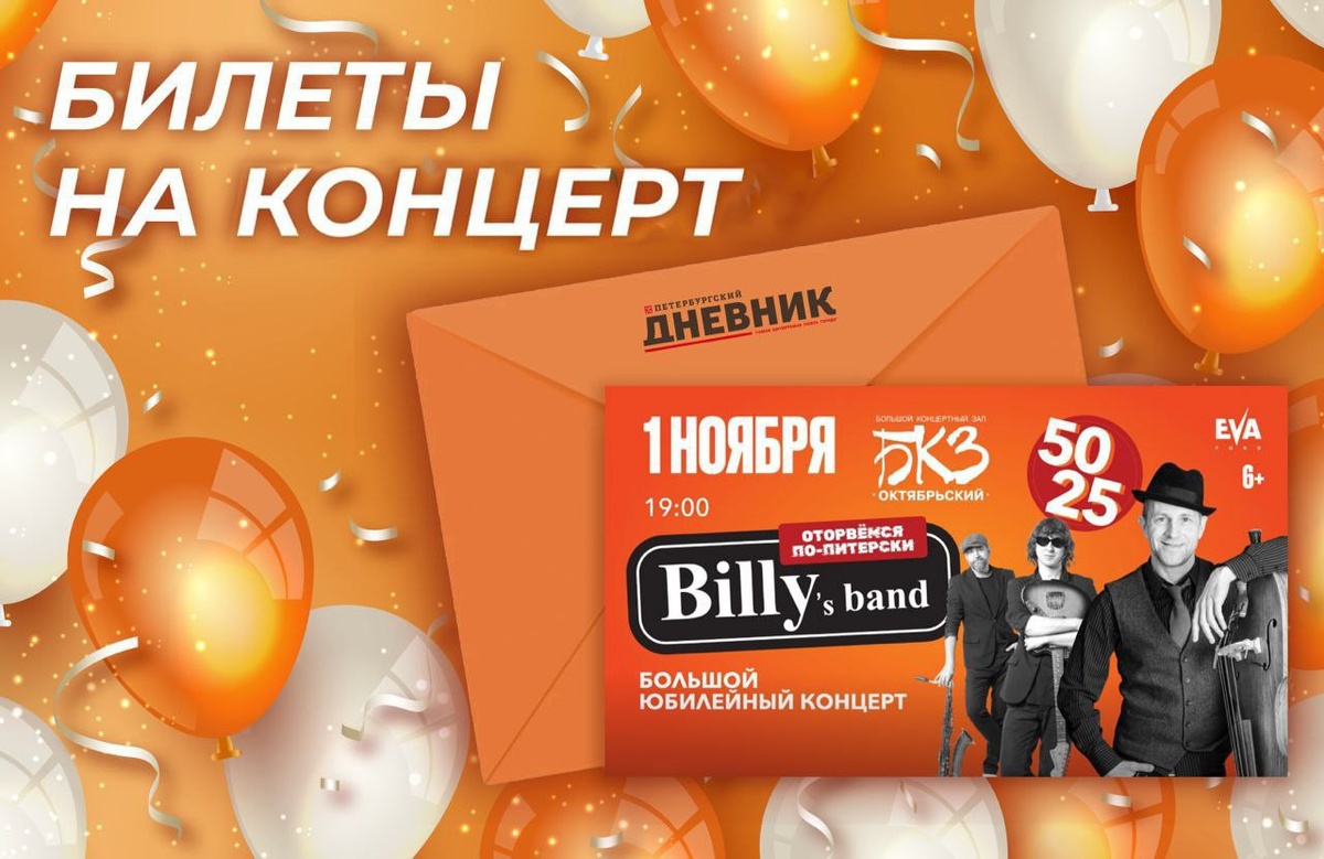 🎶 Дарим билеты на юбилейный концерт Billy’s Band! Билли Новик и группа Billy’s Band отметят в Петербурге двойной юбилей 50/25 в БКЗ «Октябрьский»! 50 лет исполняется Билли Новику и 25 лет — его главной группе — Billy’s Band, основанной в конце 2000 года и практически сразу ставшей культовой. 🔸Для участия нужно быть подписчиком «Петербургского дневника» и «Вечернего Санкт-Петербурга» в мессенджере МАХ. Итоги подведём 29 октября в MAX. 3 победителя получат по 2 пригласительных. Удачи! Подписывайтесь, чтобы быть в курсе главных новостей города и получать приятные подарки! 💡Если вы ещё не с нами — самое время присоединиться! 👇 https://max.ru/spbdnevnik https://max.ru/ta_samaya_vecherka