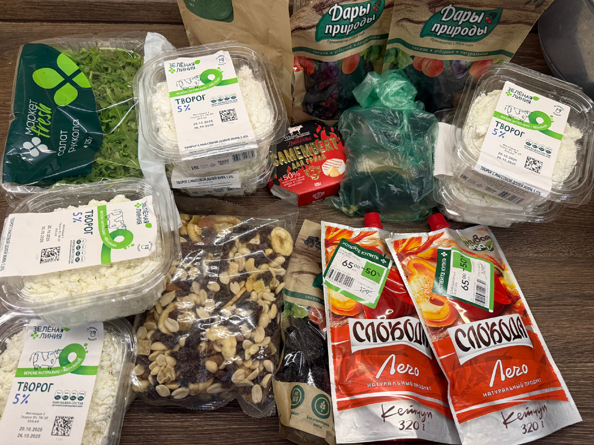 И шесть упаковок творога с хорошим сроком годности! Творог и сыр из молочной корзины, она была недалеко и я успела забрать остатки