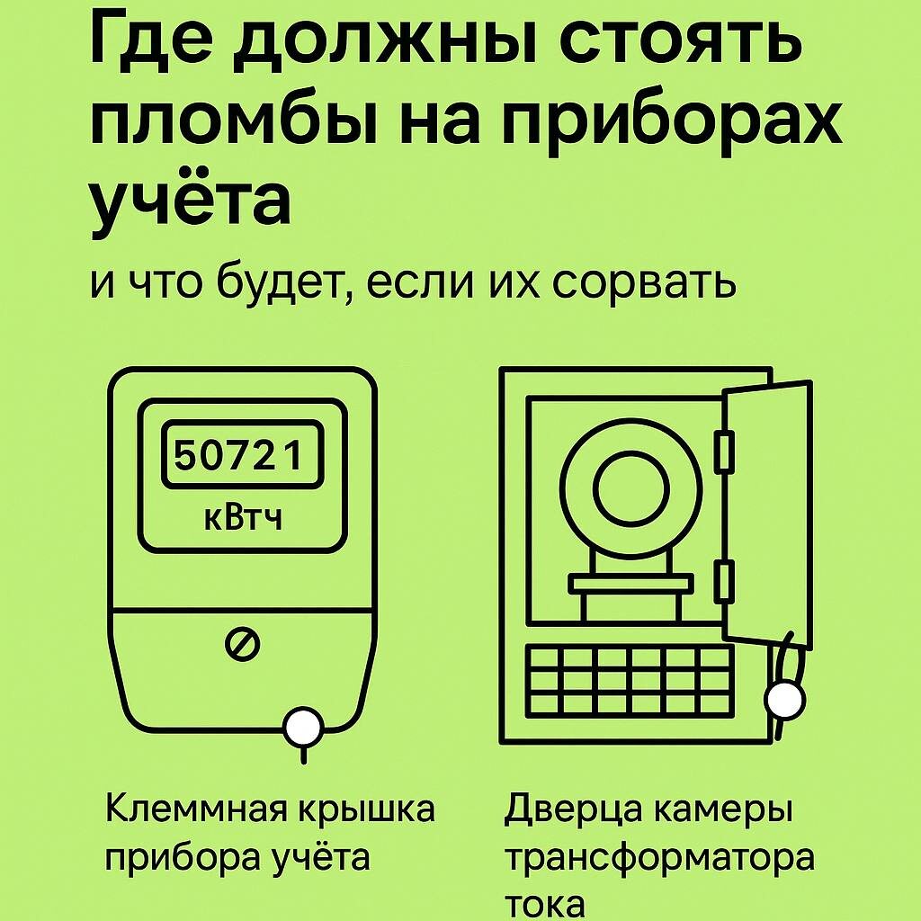 ~ Пломбы и знаки визуального контроля на электросчетчиках — это не просто «формальность», а обязательная мера защиты, которая предотвращает несанкционированное вмешательство в прибор учета. Где устанавливаются пломбы? С 29 марта 2024 года порядок размещения пломб закреплён в п. 139 “Основных положений функционирования розничных рынков электрической энергии” (ПП РФ № 442 от 04.05.2012, с изменениями). Теперь пломбы и знаки визуального контроля обязательно ставятся на: • клеммные крышки приборов учета; • клеммники трансформаторов тока; • крышки переходных коробок с цепями, идущими к счетчику; • зажимные крышки и крышки колодок зажимов приборов учета; • решетки и дверцы камер, где стоят трансформаторы тока или предохранители; • токовые цепи приборов учета (если они подключены к другим измерительным приборам или устройствам защиты); • испытательные коробки и соединения цепей напряжения при обслуживании счетчика; • клеммные и контактные соединения коммутационного оборудования. Главное