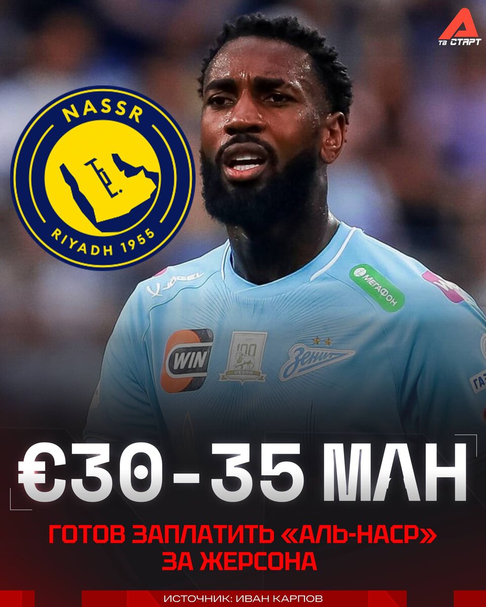 👀🇸🇦И всё-таки в Саудовскую Аравию? Как сообщает Иван Карпов, «Аль-Наср» и «Палмейрас» претендуют на бразильского полузащитника «Зенита» Жерсона. Но именно команда Криштиану Роналду лидирует в этой гонке, так как именно они готовы предложить более выгодные условия🤑 Верим в такой переход? Подписывайся на ТВ СТАРТ в MAX📲