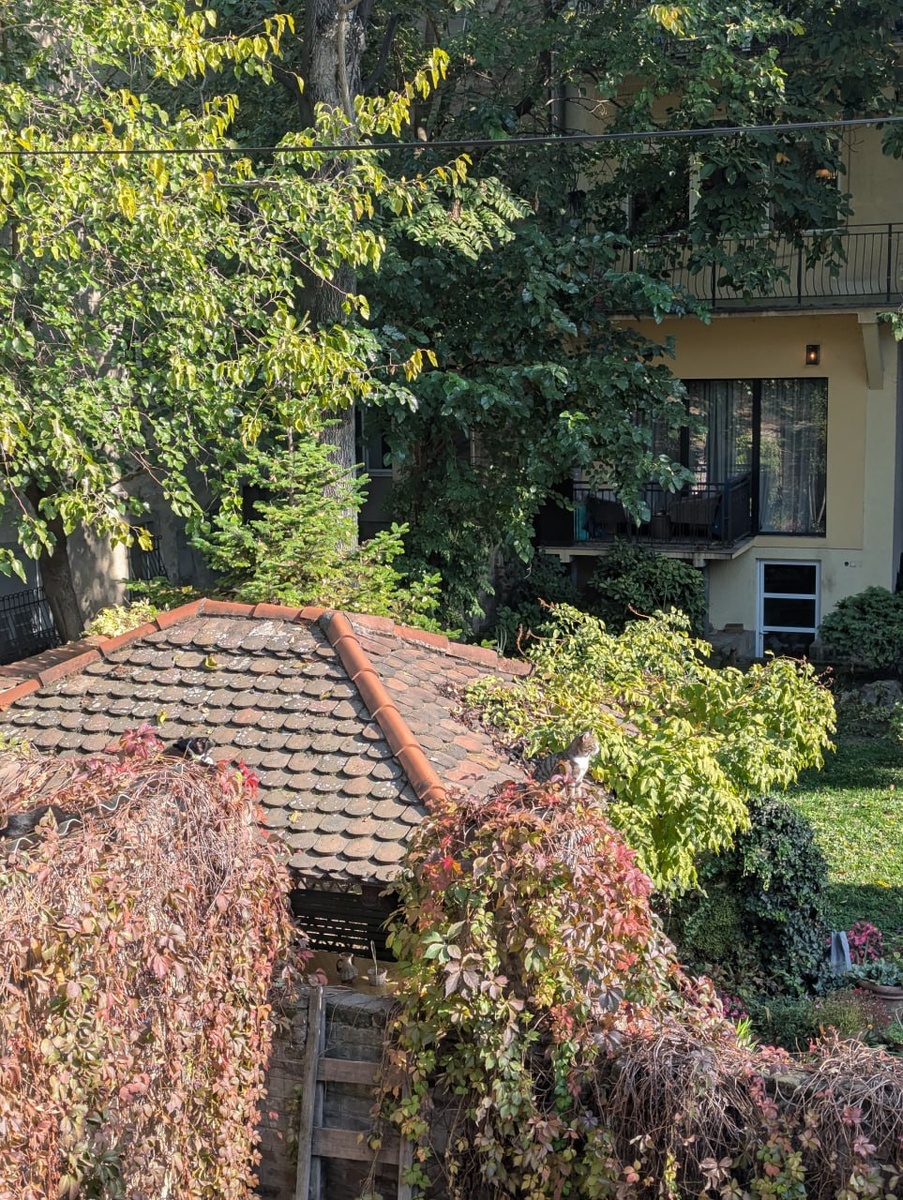 Врачар На первую неделю мы арендовали квартирку в районе Врачар. Все знакомые в Сербии, узнав это, кивали головой мол «элитно, удобно». В самой квартире обогреватель и кондиционер с режимом тёплого воздуха в спальне, а вот кухня, душ и туалет уже откровенно холодные в конце октября. Зато балкончик выходил на тихий дворик с крышами, усеянными котиками 😊 При +10 начинают топить печки в районе, воздух становится чуть дымный и повисает запах гари. Не уютный зимний пригород с дровяными печами, а скорее именно неприятная гарь. Квартира находилась на узкой улочке. Впрочем, там почти все улочки узкие. Очень эффектно на них смотрелись гоняющие автобусы. Как они так ловко мчались между плотно запаркованных машин — загадка для меня. До более или менее больших продуктовых ходить было совсем неудобно. В радиусе километра нашлись только узконаправленные лавки (овощи/пекарни) и разные мелкие магазины «продукты». Цены в них просто кошмарные. Хлеб около 200 динар, салатные листья тоже не меньше.