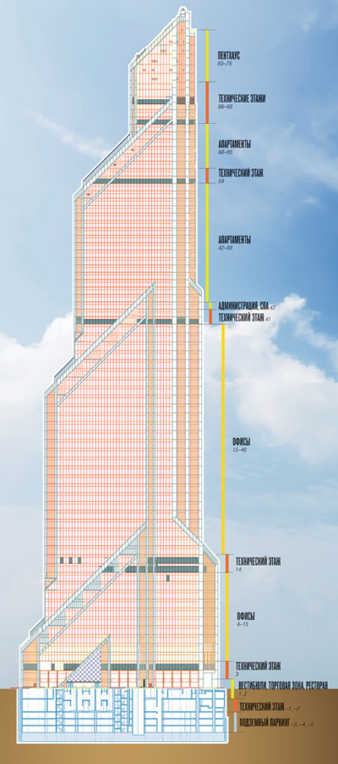 Давайте разберемся что такое небоскреб. Согласно нормативной базе Российской Федерации, это высотное здание высотой более 75 метров, обычно это здание с количеством этажей более 27.