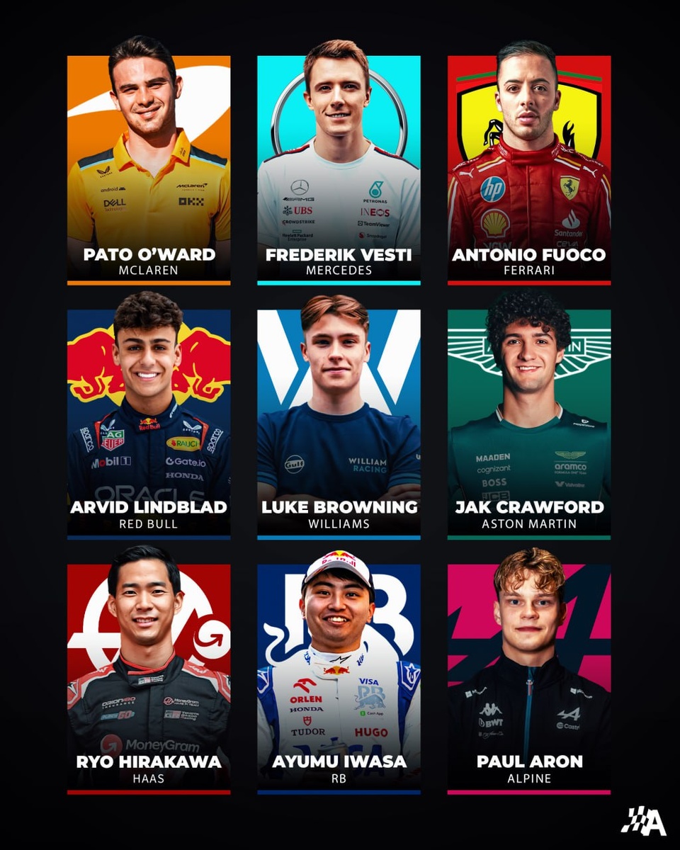Сегодня в первой практике примут участие сразу 9 новичков McLaren – Пато О’Уард вместо Ландо Норриса Пато О’Уард во второй раз подряд выйдет на свободную практику перед домашней публикой. 26-летний пилот занял второе место в чемпионате IndyCar с Arrow McLaren в этом году. Бывший юниор McLaren Алекс Данн уже участвовал в Австрии и Италии в этом сезоне, так что Оскару Пиастри ещё предстоит пропустить одну сессию – скорее всего, в Абу-Даби. Ferrari – Антонио Фуоко вместо Льюиса Хэмилтона Победитель гонки «24 часа Ле-Мана» 2024 года Антонио Фуоко впервые появится на уикенде за рулем SF-25. Юниор Ferrari Дино Беганович заменял Шарля Леклера в Бахрейне и Австрии, так что Хэмилтону ещё предстоит пропустить одну сессию. Red Bull – Арвид Линдблад вместо Макса Ферстаппена Арвид Линдблад получит больше времени на трассе, готовясь к возможному переходу в Формулу-1 с Racing Bulls в 2026 году. Линдблад занимает седьмое место в дебютном сезоне Формулы-2 и ранее пилотировал Red Bull на домашней