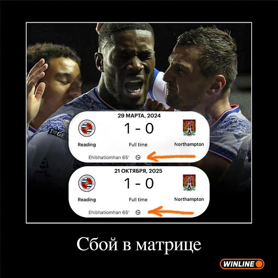 Сбой в матрице произошел в Первой лиге Англии 🏴 Рединг обыграл Нортгемптон Таун дома с тем же счетом, что и год назад. Еще и гол забил тот же чел с непроизносимой фамилией и на той же минуте, что и в марте 2024 года, — Кельвин Осемудиамен Эхибхатиомхан. Шоб вы знали.