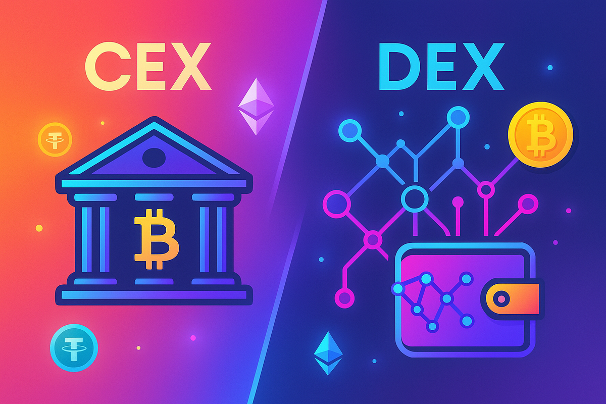 DEX — это обмен напрямую между кошельками, без кастодиального хранения у платформы. Ваши средства — в вашем кошельке, доступ охраняет сид-фраза. Популярные примеры: Uniswap, PancakeSwap и др. Плюсы: вы контролируете активы, не передаете их на «счет у биржи», есть доступ к ранним и редким токенам (заодно и повышенные риски). Минусы: ликвидность ниже по многим парам; интерфейсы сложнее для новичка; фиата «в один клик» нет — все равно сначала придется заводить стейблкоины, а уже потом менять.