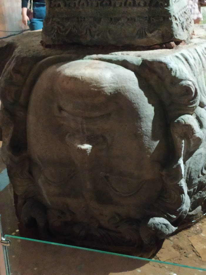 А в дальнем углу — две знаменитые головы Медузы Горгоны, одна — на боку, другая — вниз лицом.