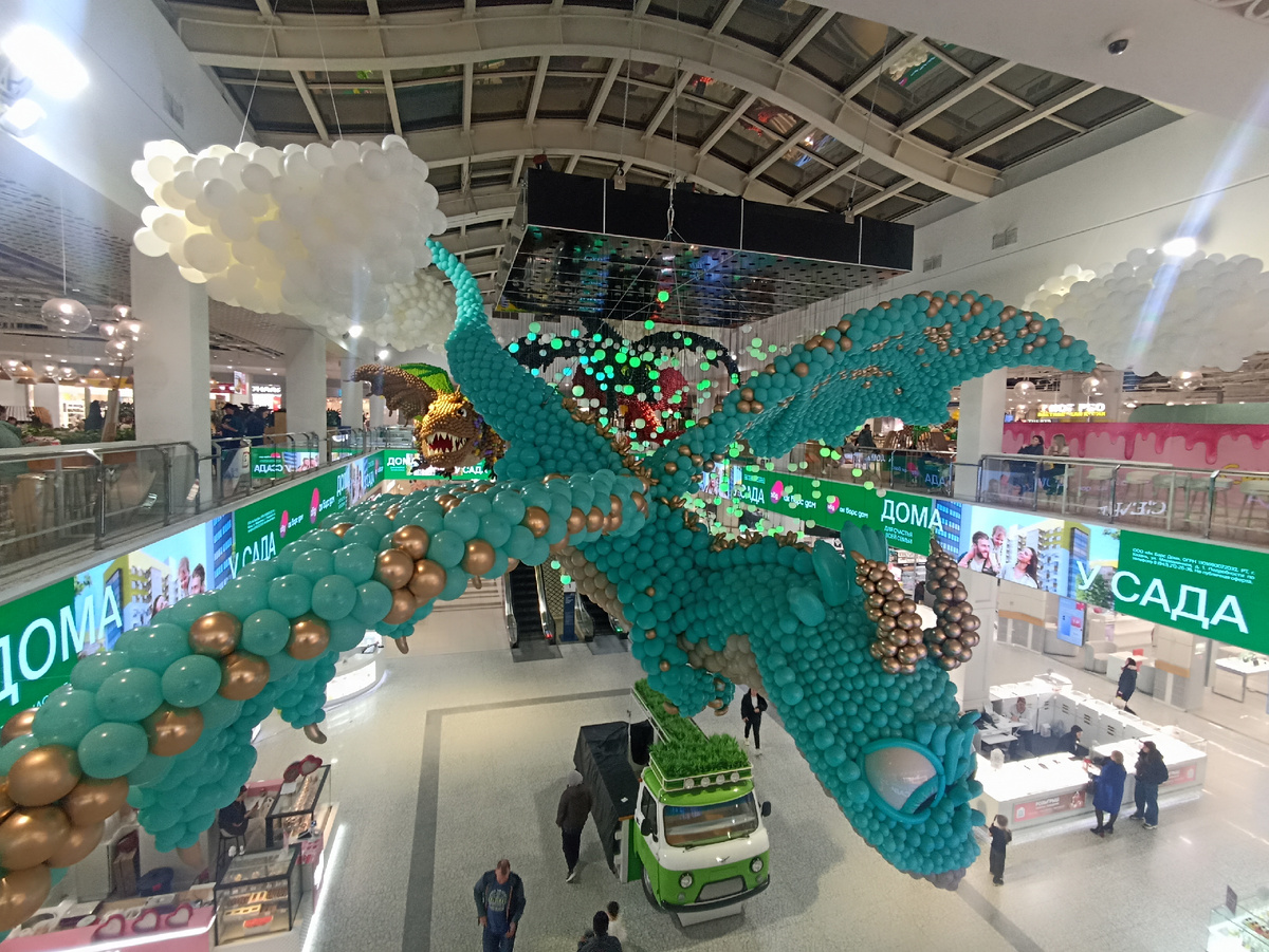 У природы нет плохой погоды, но гулять под холодным моросящим дождиком как то не хочется? Выход есть, едем туда где тепло). Но осенняя хандра добралась и до настроения и ехать тоже не хочется. Ну что-ж ищем яркое и тепло недалеко от дома. Та дам! Выход найден, ближайший торговый центр) Да, банально и что там можно увидеть нового? Оказывается можно, особенно если вы там давно не были и разные вещи заказывали на маркетплейсах, да и просто походить ножками полезно, когда у вас сидячая работа в офисе. Вот и мне попались такие дракончики из шариков, большие и очень яркие, что странно на них никто кроме меня не обращал внимания. Возможно и дети в ТЦ видели их неоднократно или радоваться мелочам многие просто разучились. Пожелаю я тогда всем хорошего настроения и ярких положительных эмоций!