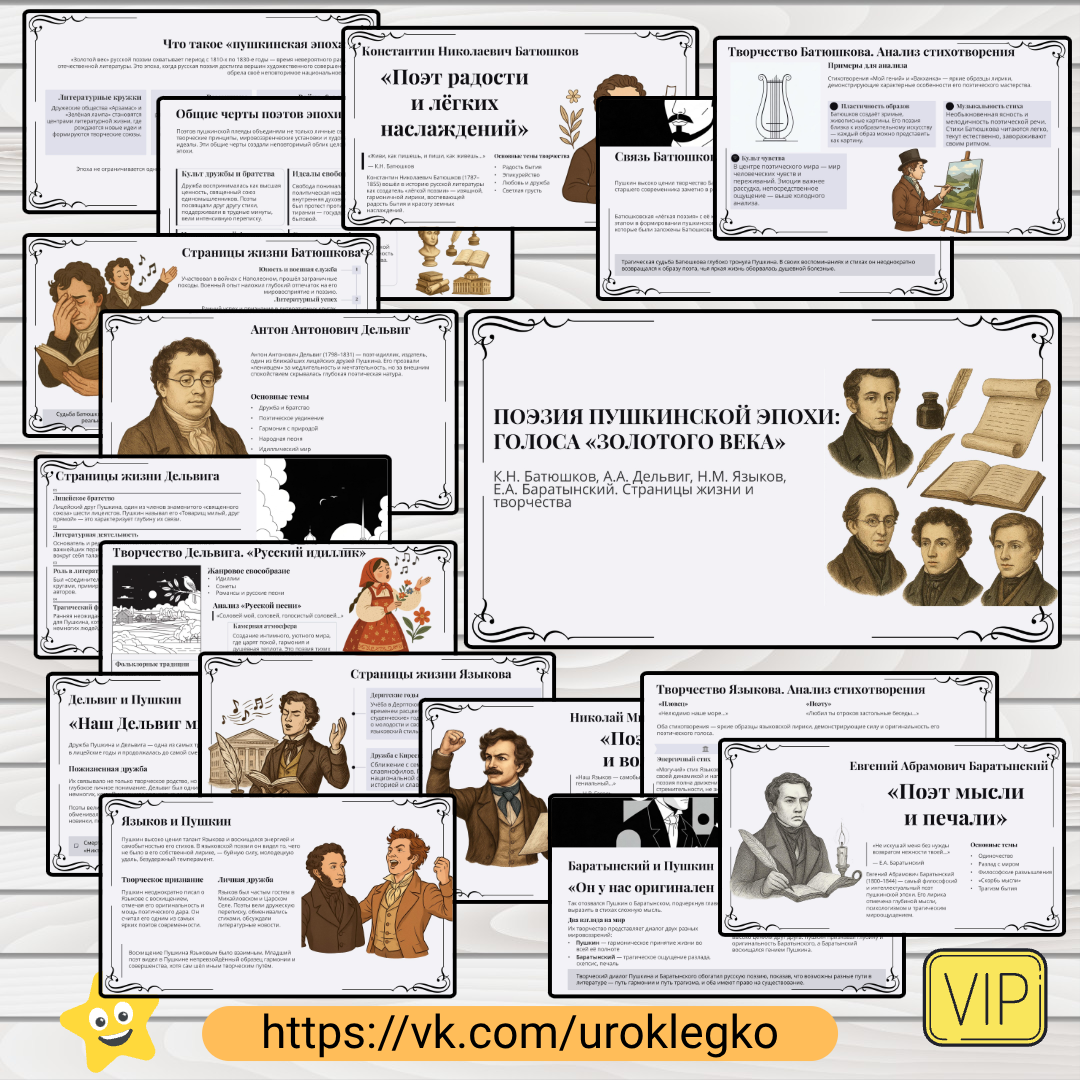 Данная презентация на уроке литературы необходима для того, чтобы выйти за рамки привычного восприятия «золотого века» русской поэзии исключительно как эпохи Пушкина и показать ученикам всё богатство и многоголосие этого периода, раскрыв самобытные таланты его ключевых современников. Она позволяет сист