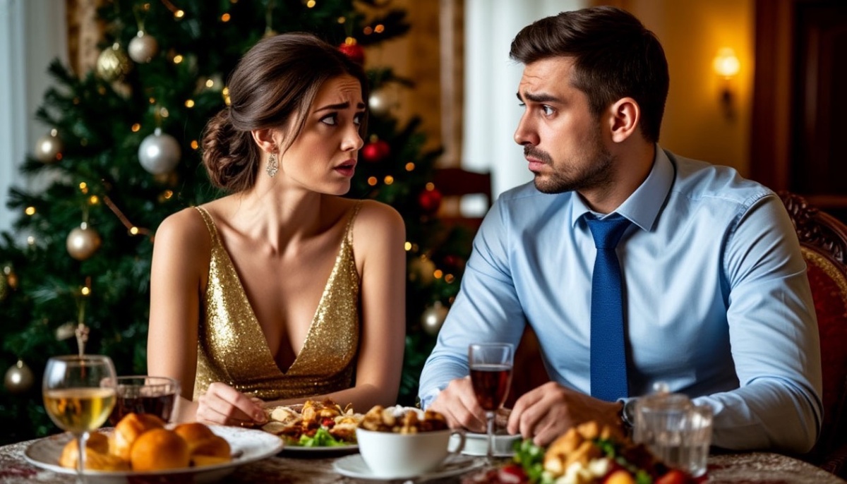 Комната замерла. Бокалы застыли в руках гостей на полпути ко рту. Новогодние гирлянды продолжали моргать, бросая разноцветные пятна на лица присутствующих.