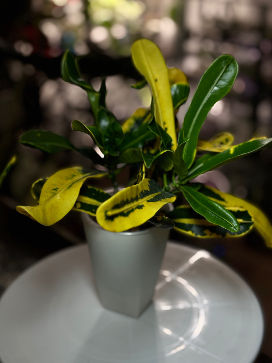 Это второй кротон в моей жизни. Первый, когда-то пал смертью храбрых в моих не опытных руках. На этот раз всё будет по-другому. Итак, в природе кротон растёт в тропических лесах Юго-Восточной Азии, включая Малайзию, Индонезию и Филиппины. Может достигать огромных размеров (3-4 м), чего конечно невозможно добиться в условиях квартиры. Да оно нам и не нужно. Как и многие тропические растения любит рассеянный свет, влажность и тепло. Желательно и дома создать приближенные условия. Сделать это не так сложно как может показаться. Самое важнее это сохранить окраску. И для этого нужен яркий рассеянный свет. Для этого есть специальные фитолампы, но можно и обычные, главное чтоб досветка была в едедневная, в течение 12-14 часов. Если света не будет, то листья станут просто зелёные. Влажность в комнате можно повысить с помощью увлажнителя, а отследить какая же она, можно при помощи гигрометра. Место для кротона нужно подбирать так чтоб не было сквозняков. Так же кротон не любит резких перепа