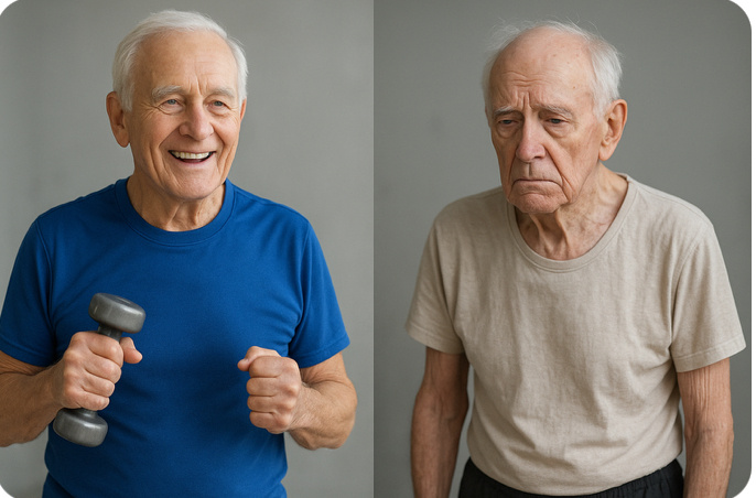 🧐Замечали ли вы, что людям в преклонном возрасте тяжело поднимать руки, ноги и в целом ходить? Даже, если с суставами более-менее в порядке, им тяжело ходить, они делают это очень медленно. Это называется 🛑саркопения🛑, что в переводе на русский "потеря мышечной массы", начинается она в 30-35 лет, в 50 набирает оборот, а далее по нарастающей происходит уменьшение мышц. ‼️Факторы риска: 🔻возраст 🔻генетические болезни 🔻неправильное питание 🔻малоподвижный образ жизни 🔻хронические болезни 🔰Интересный факт и вам на заметку: главными потребителями глюкозы являются мозг и мышцы. Представьте, что мышц становится меньше, а вы как углеводы (фрукты, сладости и т.д.) ели, так и едите, а усваивать их уже некому, значит они будут оставаться в крови, усвоению глюкозы способствует инсулин, инсулина в крови тоже становится много,👋здравствуй сахарный диабет второго типа. Конечно, это не основный фактор, приводящий к сахарному диабету, но является одной из причин. К сожалению, к моему 😔б