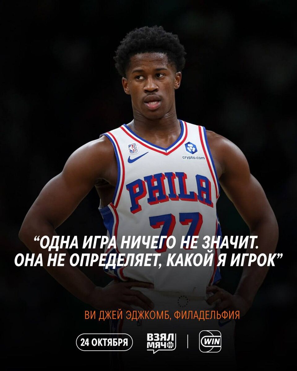 💪 Этому парню не занимать скромности 🗣 «Одна игра ничего не значит. Она не определяет, какой я игрок. Я просто продолжаю расти и работать». В своём дебютном матче Ви Джей Эджкомб набрал 34 очка, 7 подборов и 3 передачи, установив рекорд клуба. Ждём на данк-контесте и Матче новичков в этом сезоне? 👀 🏀 ПОДПИШИСЬ — ЗДЕСЬ ЖИВЁТ БАСКЕТБОЛ!