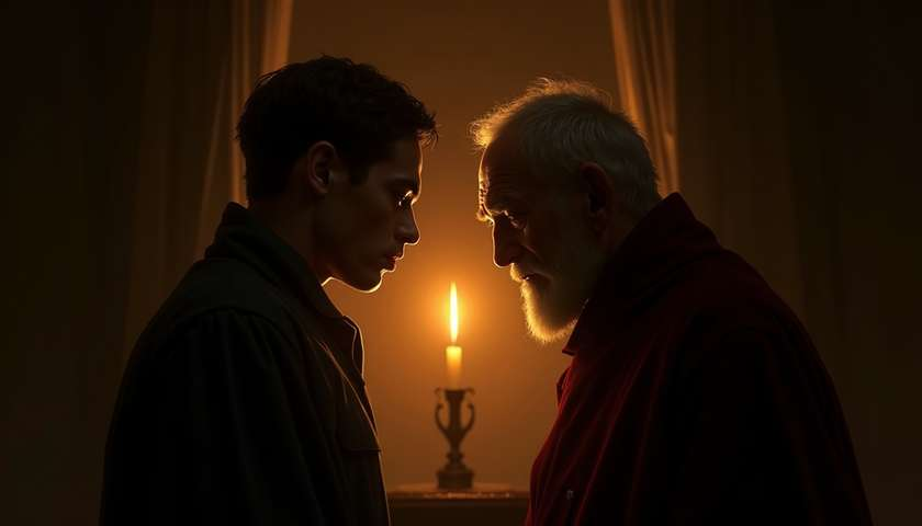 Когда он предаёт сына ради церкви, он не осознаёт, что теряет всё. Его поступок — не злодейство, а трусость, совершённая из любви. И это делает его трагическим героем: святой без мужества, отец без права быть отцом.