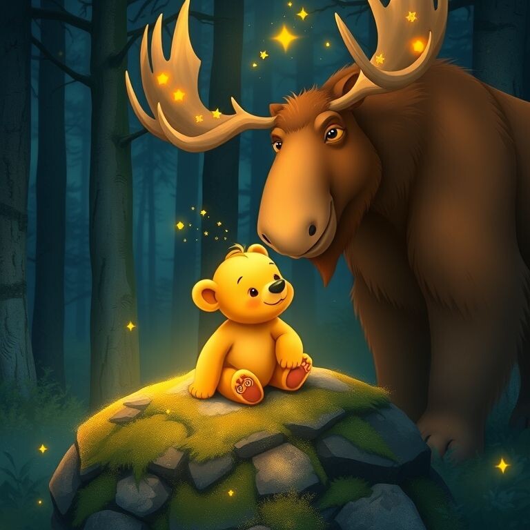 Однажды, когда грустинка подступила совсем близко, к нему пришла сама Хранительница Леса — огромная и добрая лосиха с рогами, похожими на ветви древних деревьев.