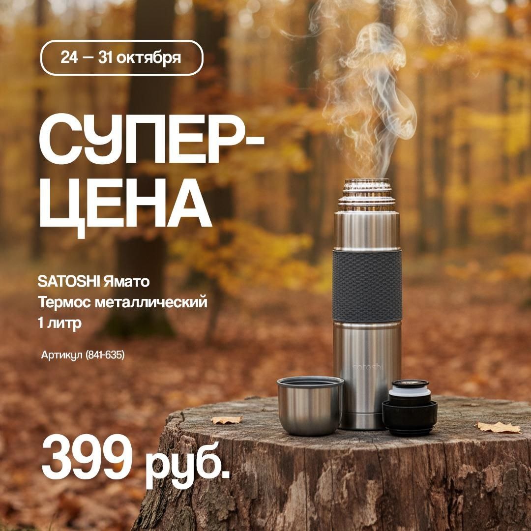 С 24 по 31 октября металлический термос SATOSHI объемом 1 литр за 399₽