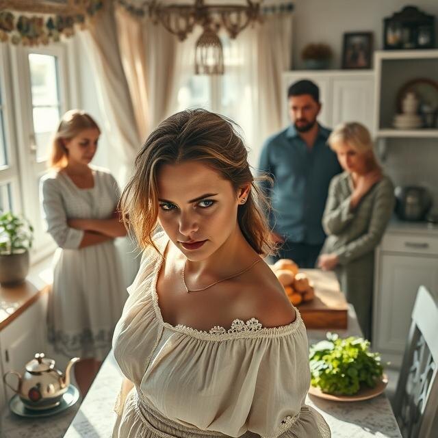 Анастасия стояла в дверях кухни, в руках всё ещё дрожала ложка. Кофе на плите уже убежал, но она даже не повернула головы — всё внимание было на этих троих: свекровь, свёкор и злопамятный Артём, младший брат мужа, который вечно ухмыляется так, будто знает что-то, чего не знают остальные.