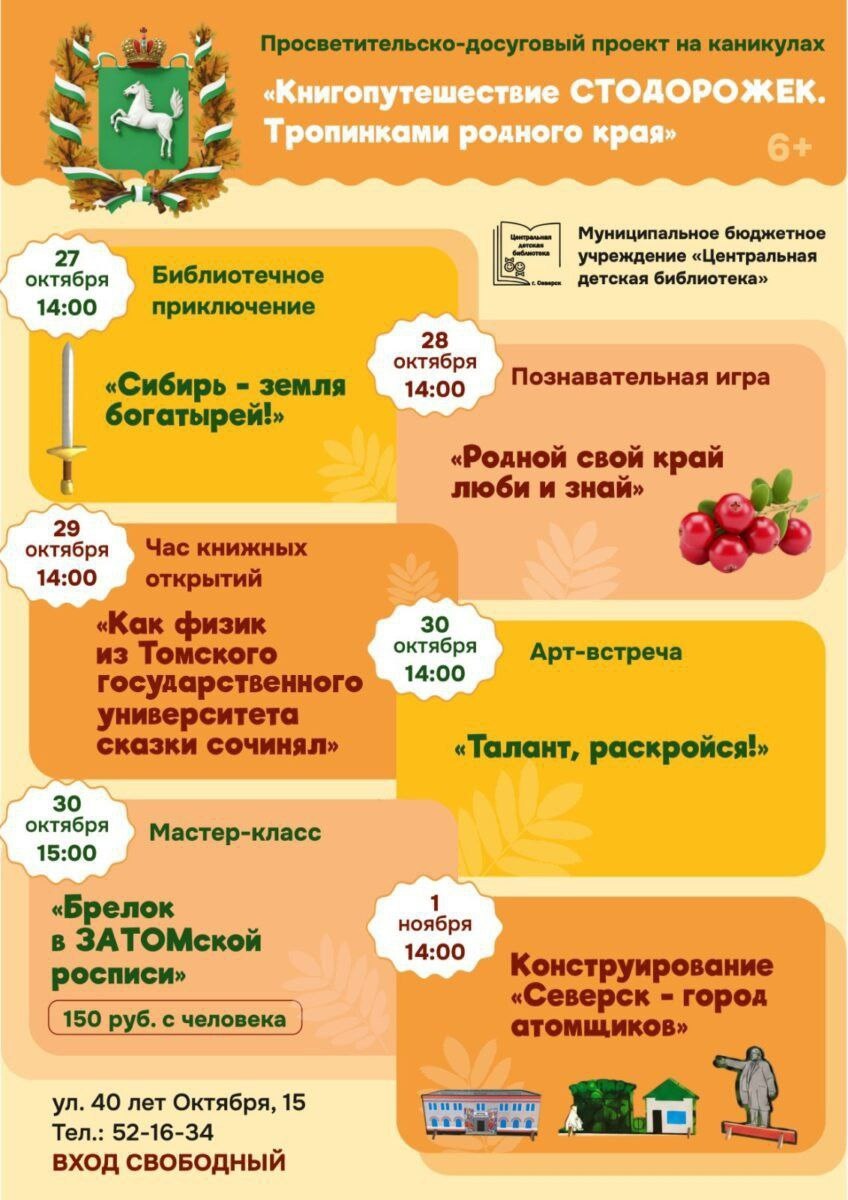 Осенние каникулы – не повод утыкаться в телефон! Это повод – отправиться в путешествие и пройти 100 дорожек, чтобы что-то узнать, что-то смастерить, чему-то удивиться. Или даже найти новых друзей! #СеверскАфиша