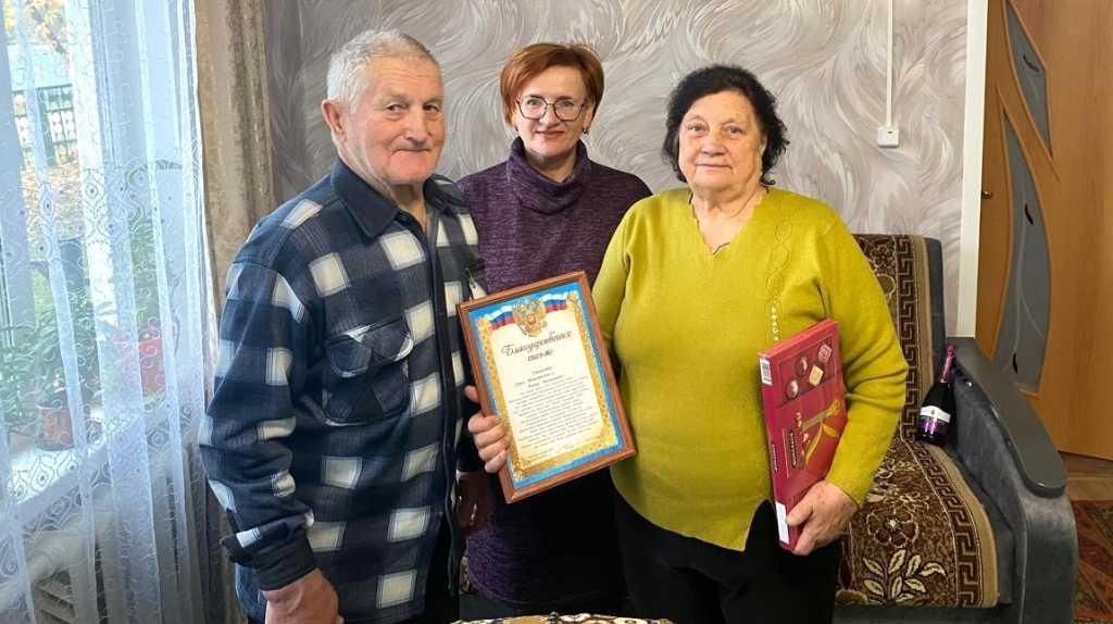 Фрол и Лидия Храпоновы из Жуковки Брянской области отпраздновали бриллиантовую свадьбу. Они прожили вместе 60 лет. Супругов приехала поздравить начальник районного отдела ЗАГС Вера Слесарева, родные. Юбилярам вручили благодарственное письмо, сувениры. Фрол Васильевич посвятил себя профессии строителя. Однажды вместе со стройбригадой он приехал строить теплицы в Староселье, где жила Лидия. Молодые люди полюбили друг друга, вскоре сыграли свадьбу и стали жить в семье мужа в Жуковке. Супруг трудился на стройках, жена долгие годы работала на велозаводе штамповщицей прессового цеха. Храпоновы воспитали двоих дочерей и сына. Теперь их радуют шесть внуков и правнук. Трое внуков – бойцы СВО. Сейчас супруги на заслуженном отдыхе. Секретом своего семейного счастья они назвали взаимную уступчивость, заботу друг о друге и понимание. Супруги Храпоновы из Жуковки отметили бриллиантовую свадьбу