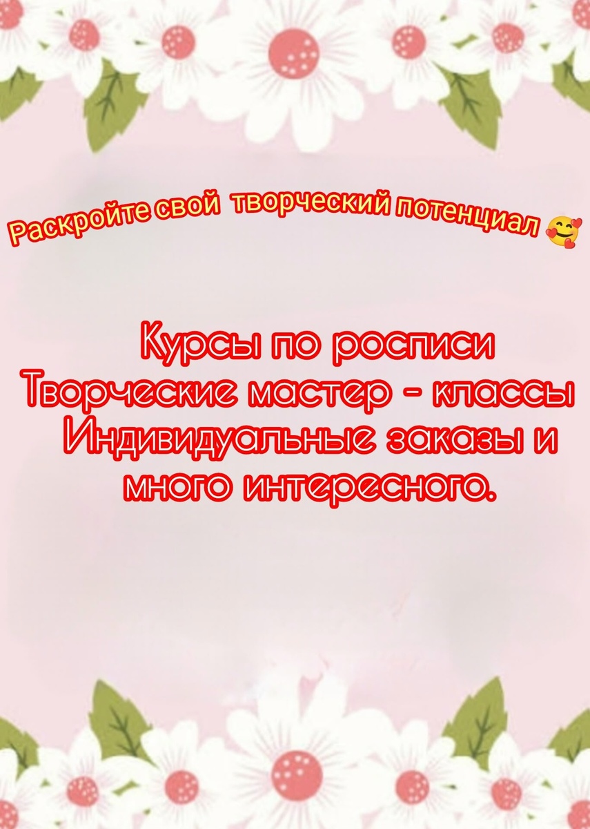 Определитесь, что вам ближе: научится самому или получить готовый арт - объект. Напишите нам в группу в личные сообщения с фразой: "Хочу на курс!" "Интересен мастер - класс!" "Мечтаю о росписи на заказ!" Небольшие изделия отправляем посылкой по всем городам СНГ. Мы обсудим все детали и подберем для вас идеальный вариант! - Напишите в комментариях "Творчество" И стань частью творческого мира. Присоединяйся https://vk.ru/public217729770 #творческиекурсы #мастеркласс #вологда #росписьподереву #росписьназаказ #картинаназаказ #научитьсярисовать #творчество #артстудия #вдохновение #рукоделие