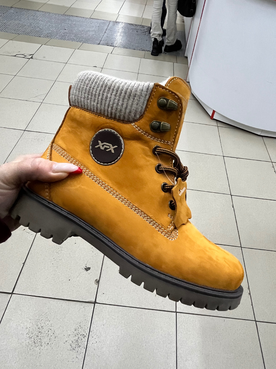 На мое удивление было много красивых, практически новых ботинок разных цветов, внешне очень похожих на Тимберленды, нубук и внутри овчинка, я начала их предлагать в своем телеграмм канале ШОПИНГАУЭР, так как понимала что такая обувь стоит в разы дороже и многие ограничены в средствах, а сейчас как раз начинается сезон этой обуви, размер конечно был скажем больше детский 36 на всех парах, но детишкам тоже надо в чем-то ходить. И увы, и ах, мое разочарование, когда я поняла что именно эта обувь стоит с фиксированной ценой, и стоила она в районе 2700 р. В целом возможно не плохо и для такой цены, но это уже больше про магазин, а не про секонд.