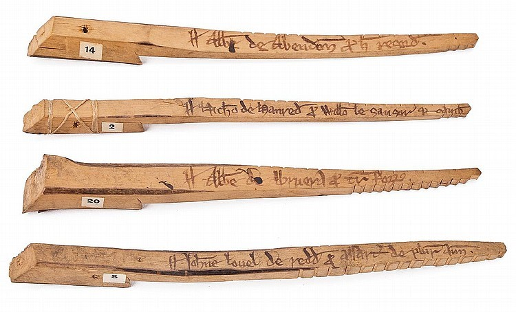 Бухгалтерская система двойной записи, разработанная Лукой Пачоли (1447 - 1517), тоже явно развита от использования "счетных палок", разделенных на две половины и одновременного произведения зарубки на обеих половинах. Дéбет — это левая часть палки (баланса), кто нам должен или что у нас есть в активах; крéдит — правая — что мы получили от учредителей и что должны другим. Если сумма по дéбету не соответствует сумме по крéдиту — значит, мы что-то упустили и не посчитали. См. далее: